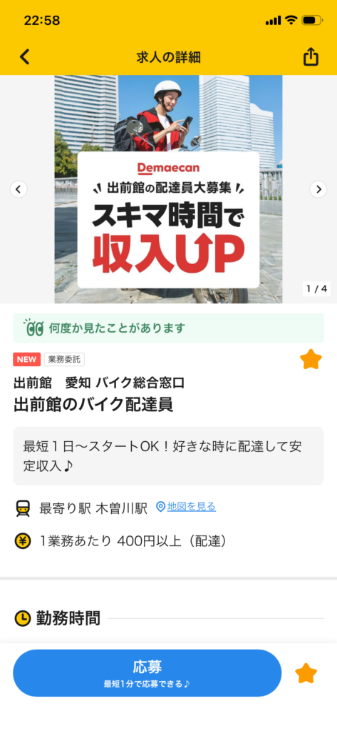出前館のバイク配達員の募集があった。